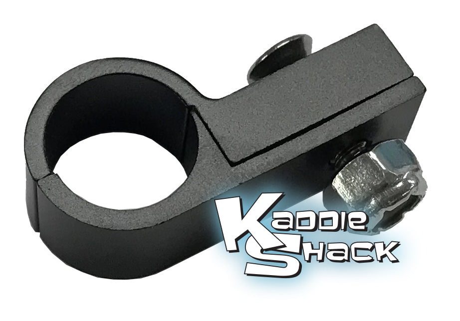 This Cobra™ clamp is used to secure a #6 fuel hose to a fan shroud, firewall, etc. It comes with a flush mount screw and locking nut, but can be drilled out to fit a stock engine tin screw, etc. It's a super nice way to keep your fuel hoses from dancing around in the engine bay.