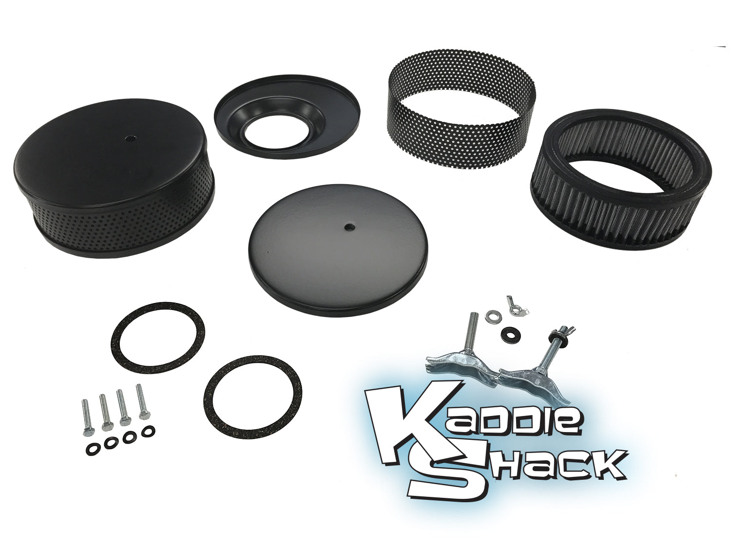 These are a full 1-3/8" shorter than the standard air cleaners, measuring just 2-5/8" overall from the bottom of the air cleaner base (where it mounts to the carb) to the top of the air cleaner lid. They feature the newer gauze style oilable air filter elements, new cork air cleaner base gaskets, and all new mounting hardwere, including our EPDM air cleaner seals.