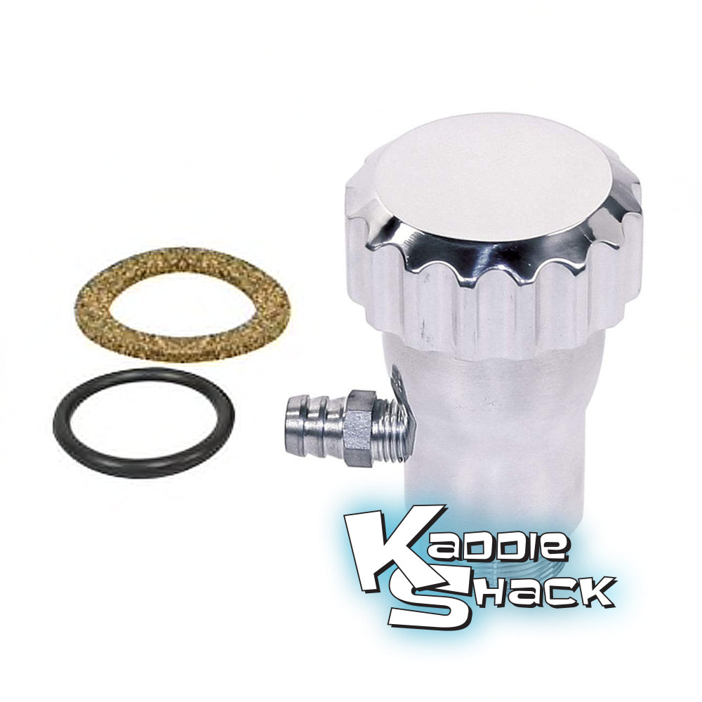 This is a really nice quality oil filler with a vent tube fitting included to run to a breather box or ar cleaner. The anodized finish adds a nice touch to any engine bay. Comes with 1/2" barbed x 1/4" NPT breather fitting, o-ring, and cork cap gasket.