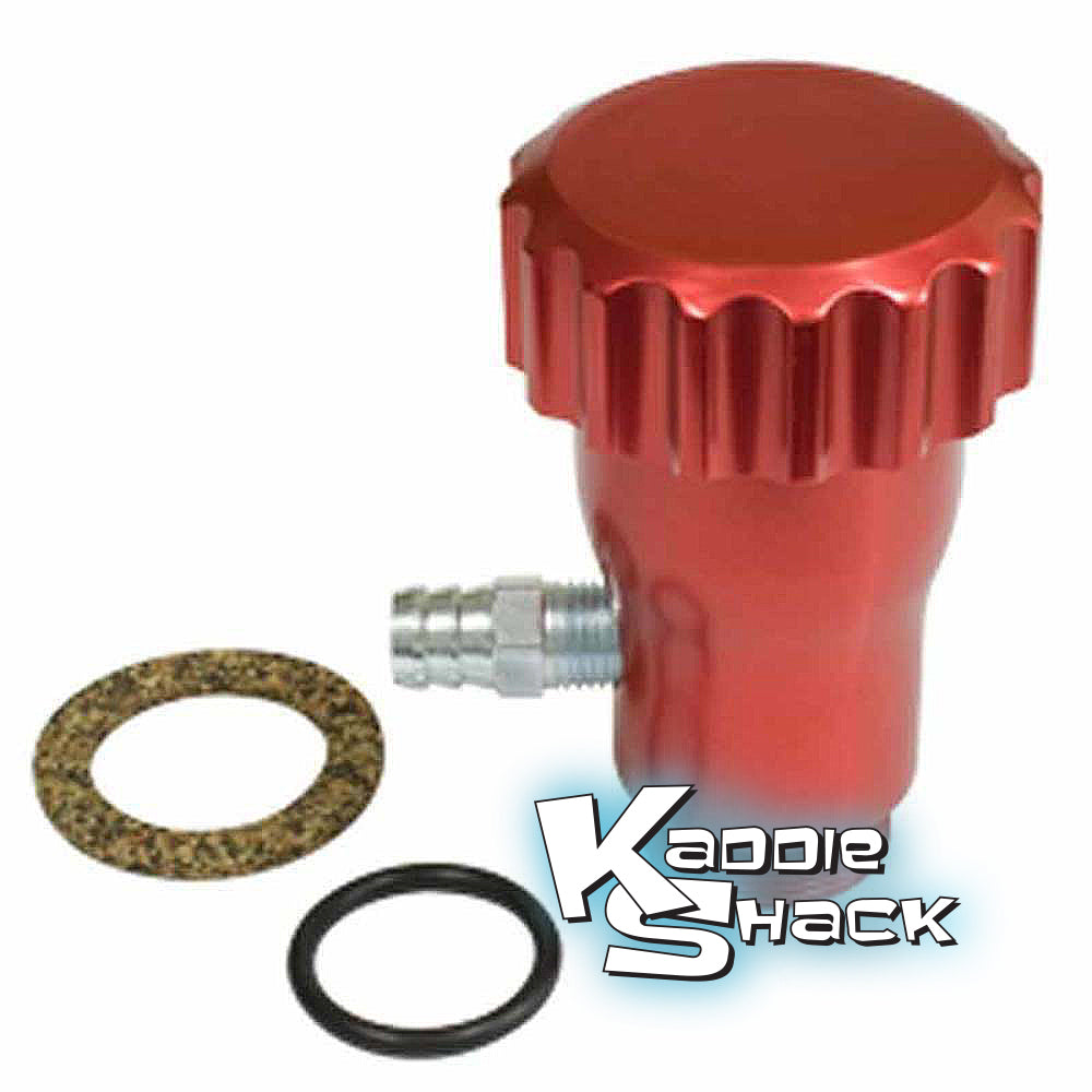 This is a really nice quality oil filler with a vent tube fitting included to run to a breather box or ar cleaner. The anodized finish adds a nice touch to any engine bay. Comes with 1/2" barbed x 1/4" NPT breather fitting, o-ring, and cork cap gasket.