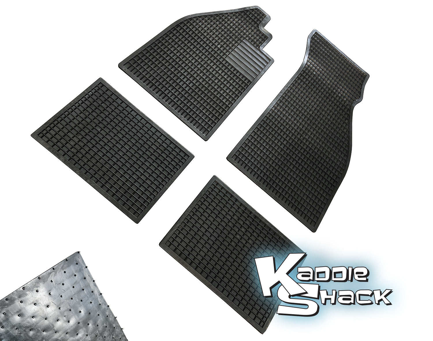 If you're looking for an easy-to-clean and HEAVY DUTY floor mat to protect your carpet, or just to make your interior look a little more spiffy, these are just the ticket! If they get dirty, just take them out and hose them down! They're pretty heavy and durable, and will help knock road noise down, too. The backs have tiny little modes nipples in them to help grip the carpet and keep them from sliding around. Fit all air cooled bugs. NOTE: They are designed to fit the bugs that have the footrest on the passenger's side, but can be trimmed to fit if your footrest has been removed.